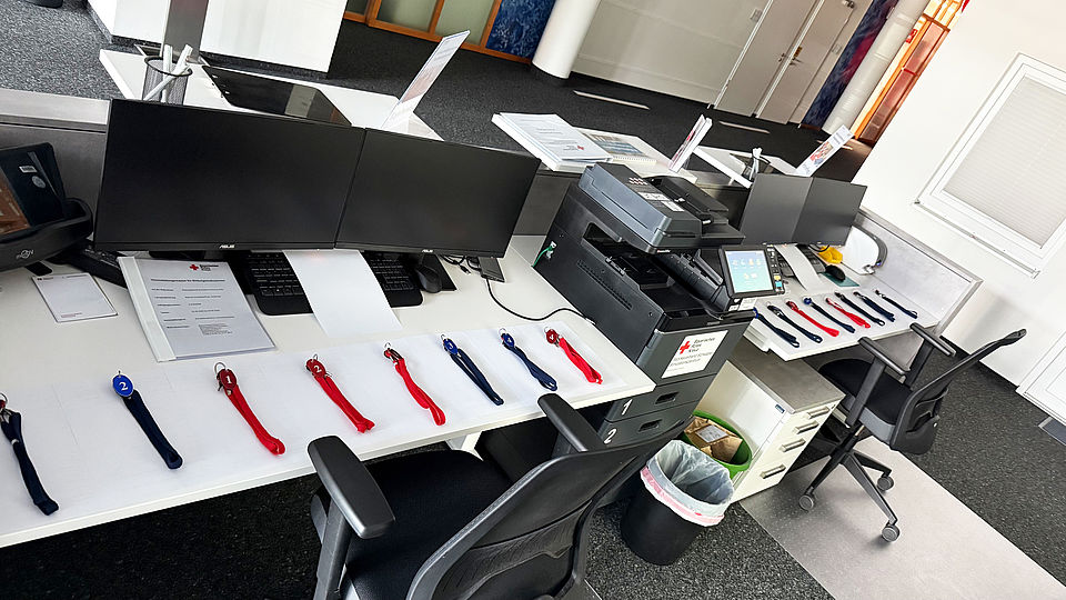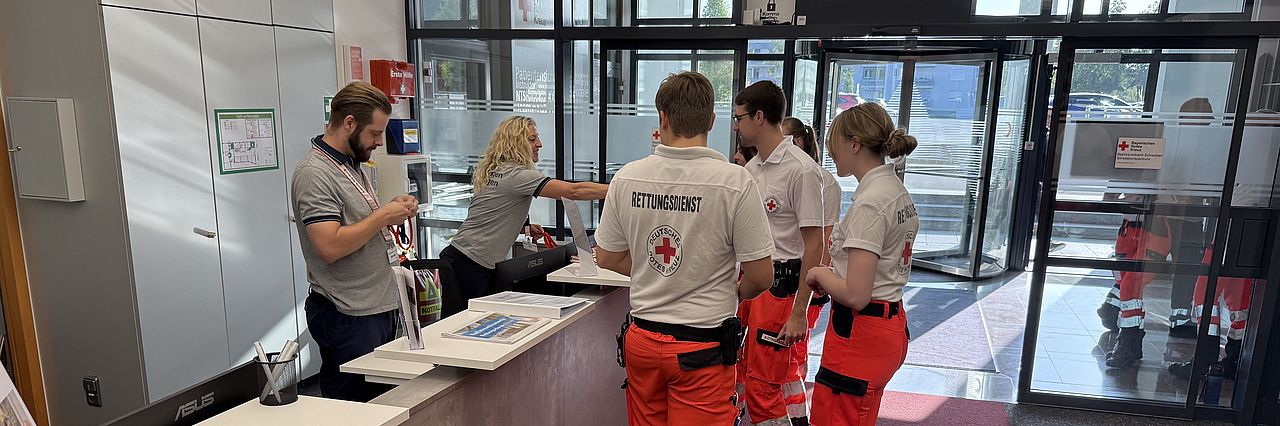 Hier begrüßen wir nicht nur unsere Teilnehmer und unsere Gäste. Dieser Bereich ist auch die ideale Trainingsmöglichkeit für simulierte Einsätze in Büros und dient auch als imaginärer Stützpunkt für Notaufnahme, Normal- oder Intensivstation, Polizeiinspektion und vieles mehr.